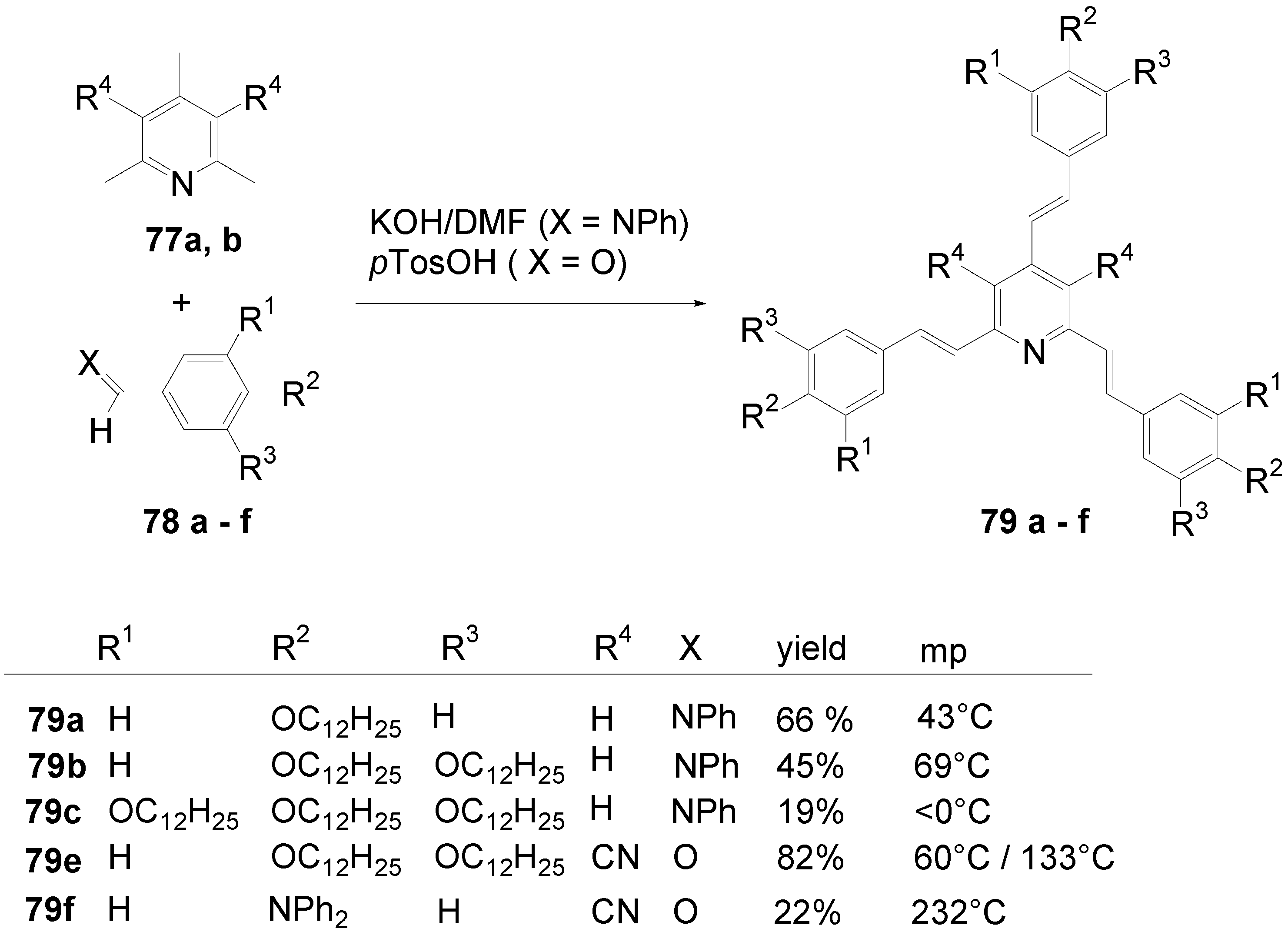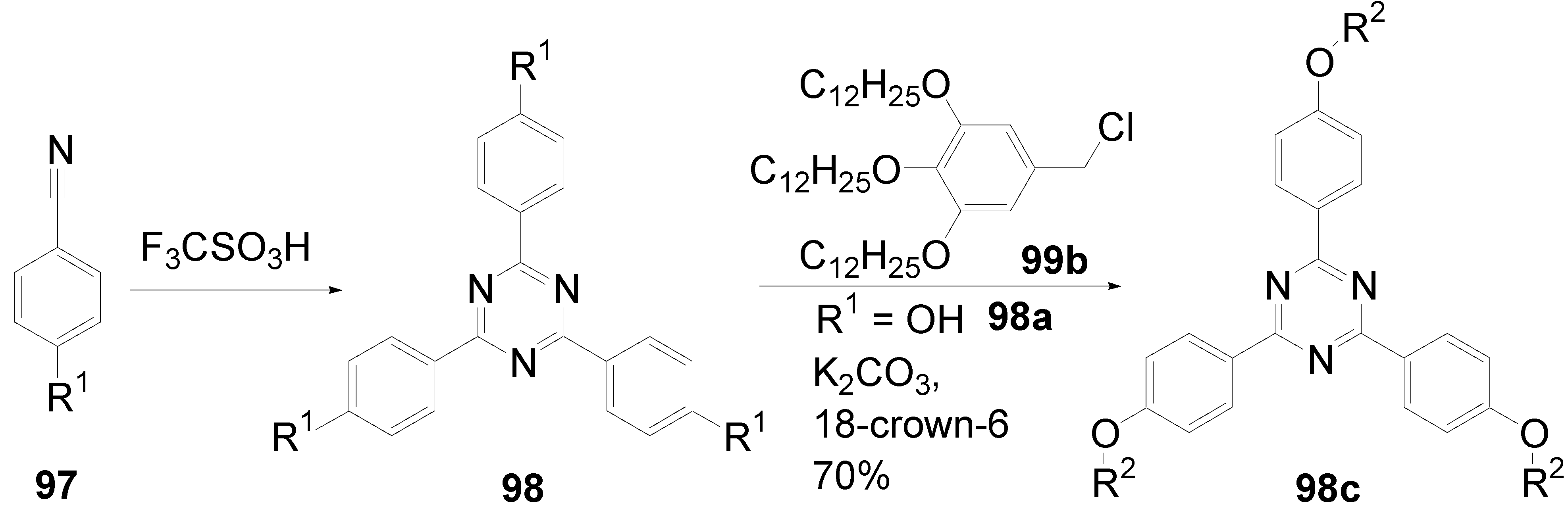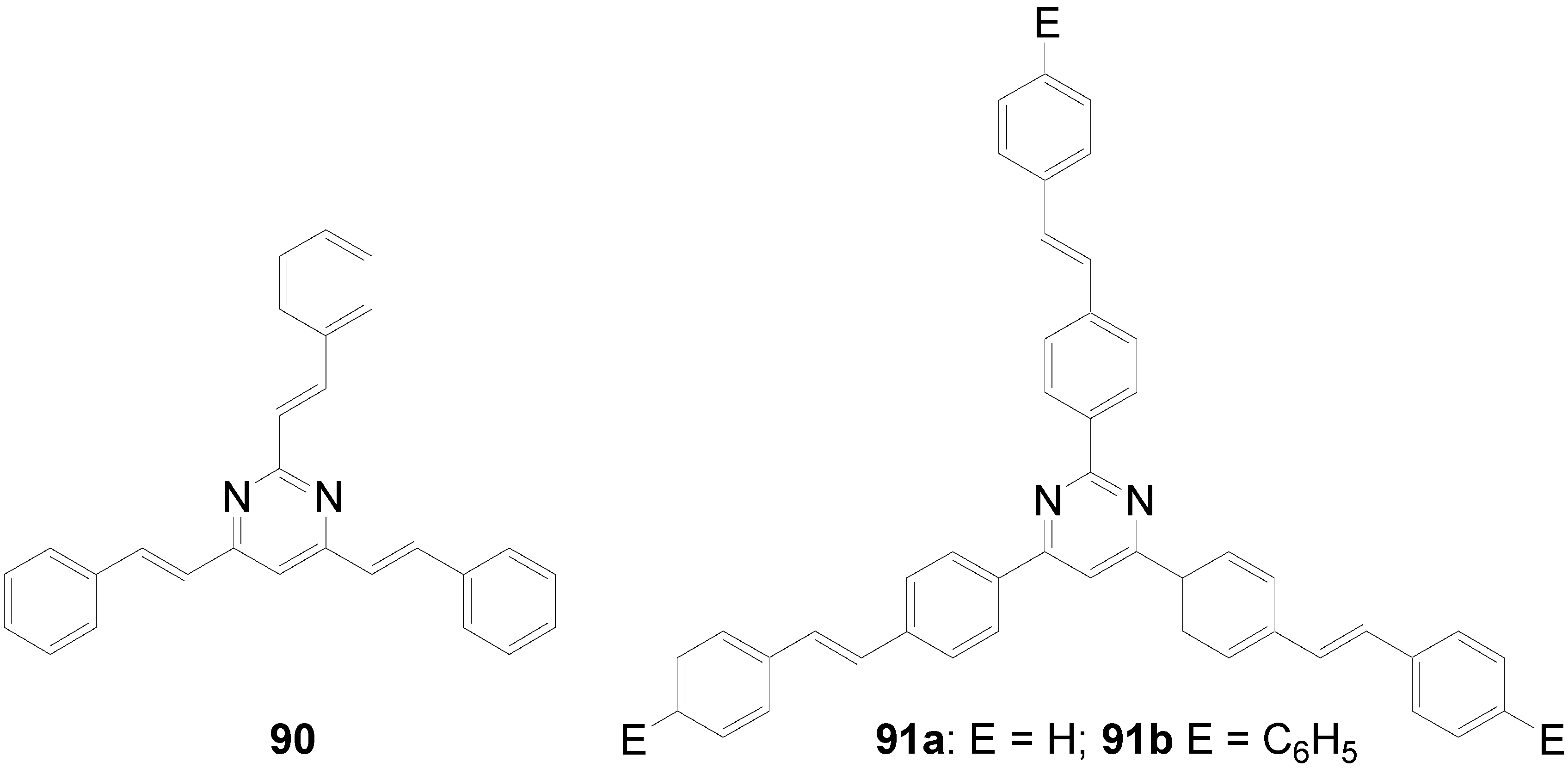 - Holst, H.C.; Pakula, T.; Meier, H. Liquid crystals in the series of 2,4,6-tristyryl-1,3,5-triazines. Tetrahedron 2004, 60, 6765–6775. [Google Scholar] [CrossRef]