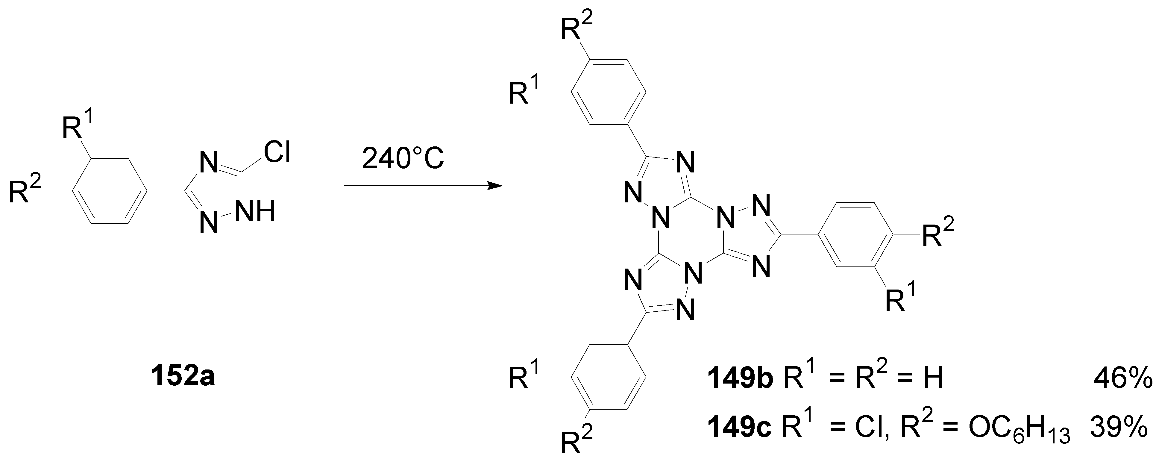 - Glang, S.; Schmitt, V.; Detert, H. Tristriazolotriazines-A novel heteroaromatic core for discotic liquid crystals. Proc. 36th German Topical Meeting on Liquid Crystals 2008, 125–128. [Google Scholar]