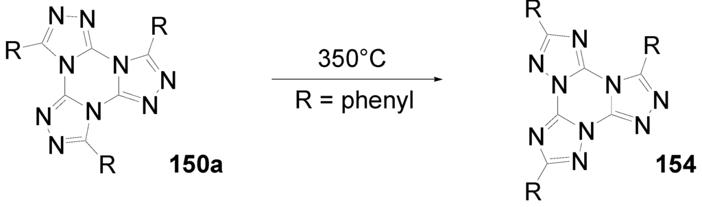 - Tartakovsky, V.A.; Frumkin, A.E.; Churakov, A.M.; Strelenko, Yu. A. New Approaches to the synthesis of tris[1,2,4]triazolo[1,3,5]triazines. Russ. Chem. Bull. Int. Ed. 2005, 54, 719–725. [Google Scholar] [CrossRef]