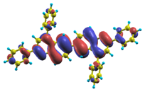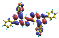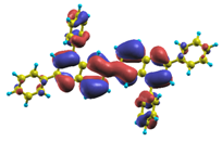 These excited states were studied using the natural transition orbital analysis [114] based on the calculated transition density matrices. This analysis offers the most compact representation of a given transition density in terms of an expansion into single-particle transitions. As representative examples, the calculated transition orbitals of B1PPQ and BtBPQ are displayed in Table 17 and Table 18. For other oligomers, see Refs. [46,47].