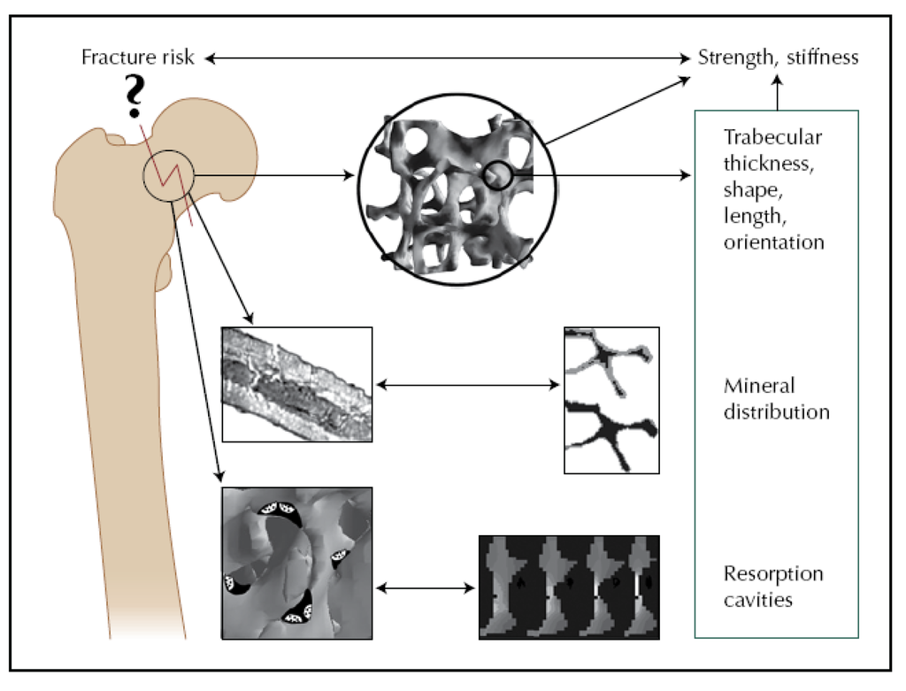 Basal studies investigating cortical and cancellous bone have resulted in information on the effect of trabecular architecture, mineral distribution, and bone remodeling on bone strength and stiffness. As the resolution of clinical imaging techniques and data extraction techniques improve, this information will gradually become available directly from clinical data. Reprinted from ref. [156], with permission of Springer.