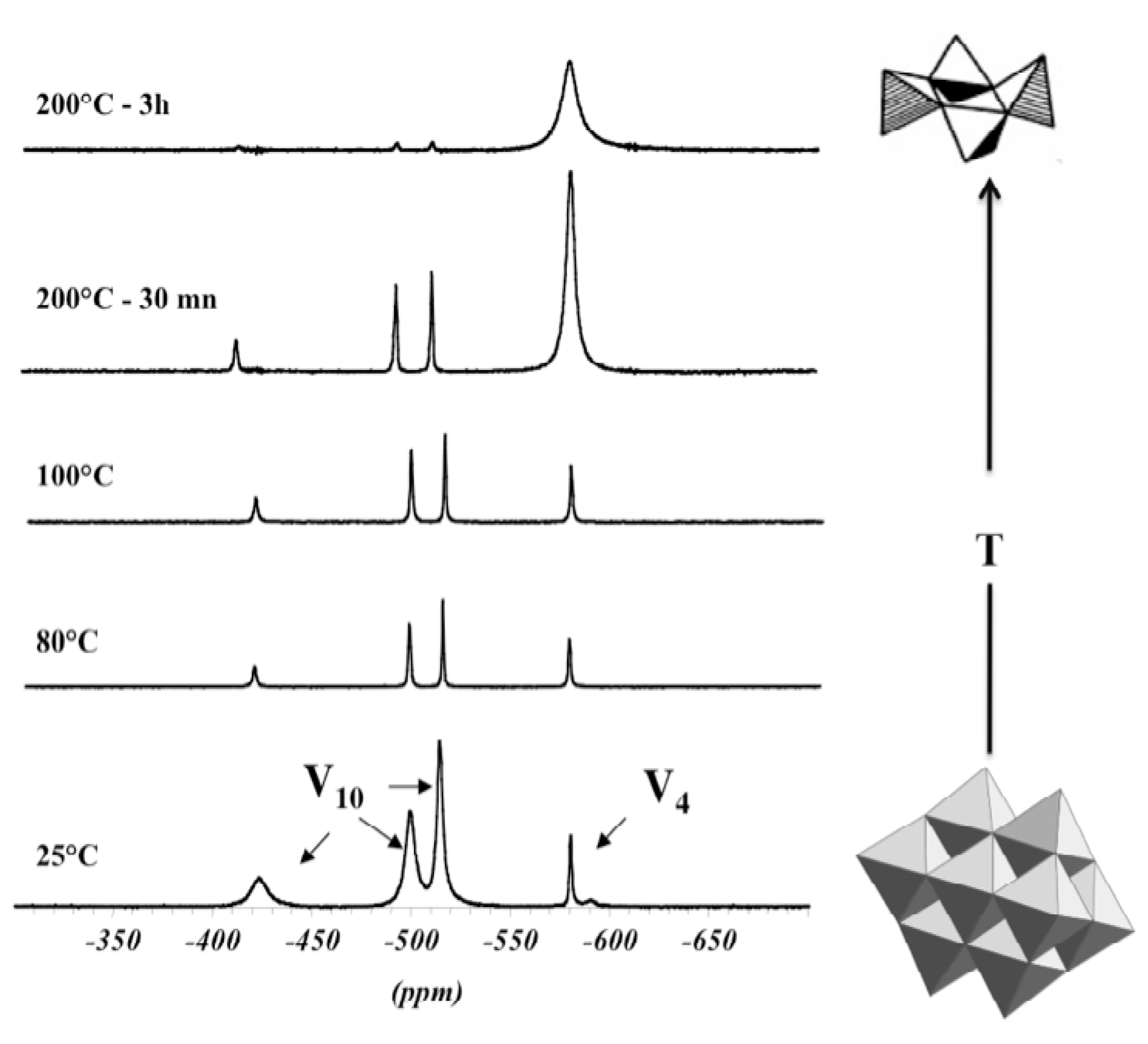 - Wery, A.S.; Gutierez-Zorrilla, J.M.; Luque, A.; Ugalde, M.; Roman, P. Phase transition in metavanadates. Polymerization of tetrakis(tert-butylammonium)-cyclo-tetrametavanadate. Chem. Mater. 1996, 8, 408–413. [Google Scholar] [CrossRef]