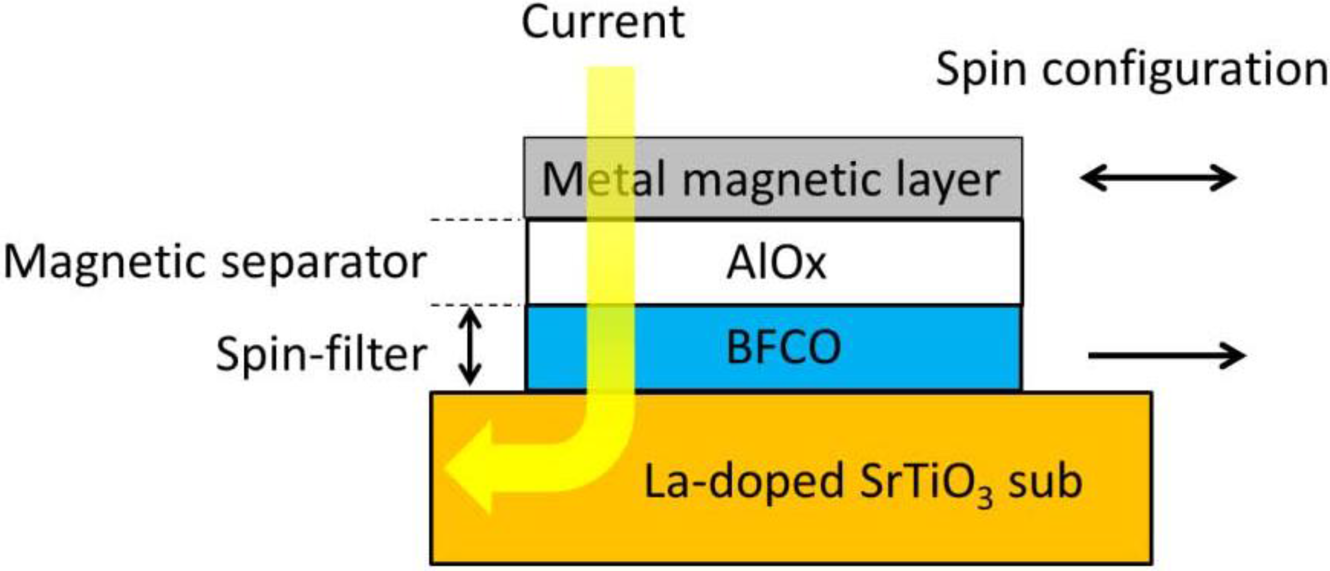Schematic illustration of stacking structure of spin-filter device using Bi(Fe0.9Co0.1)O3.