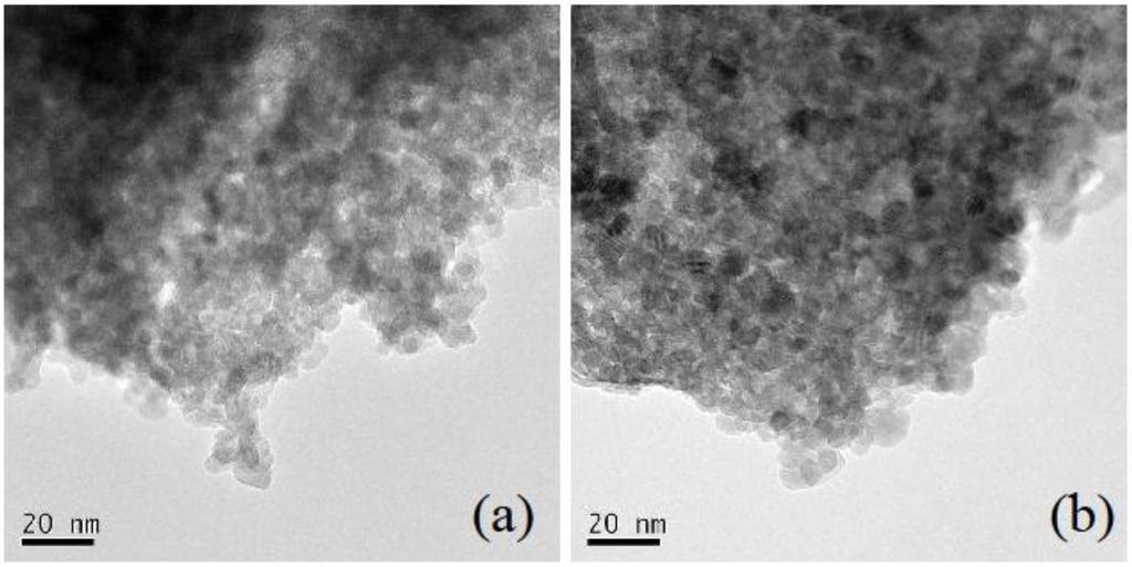 where K is the Scherrer constant, λ is the wavelength of the X-ray, θB is the Bragg angle [30]. Estimated average particle size was approximately 5 nm.