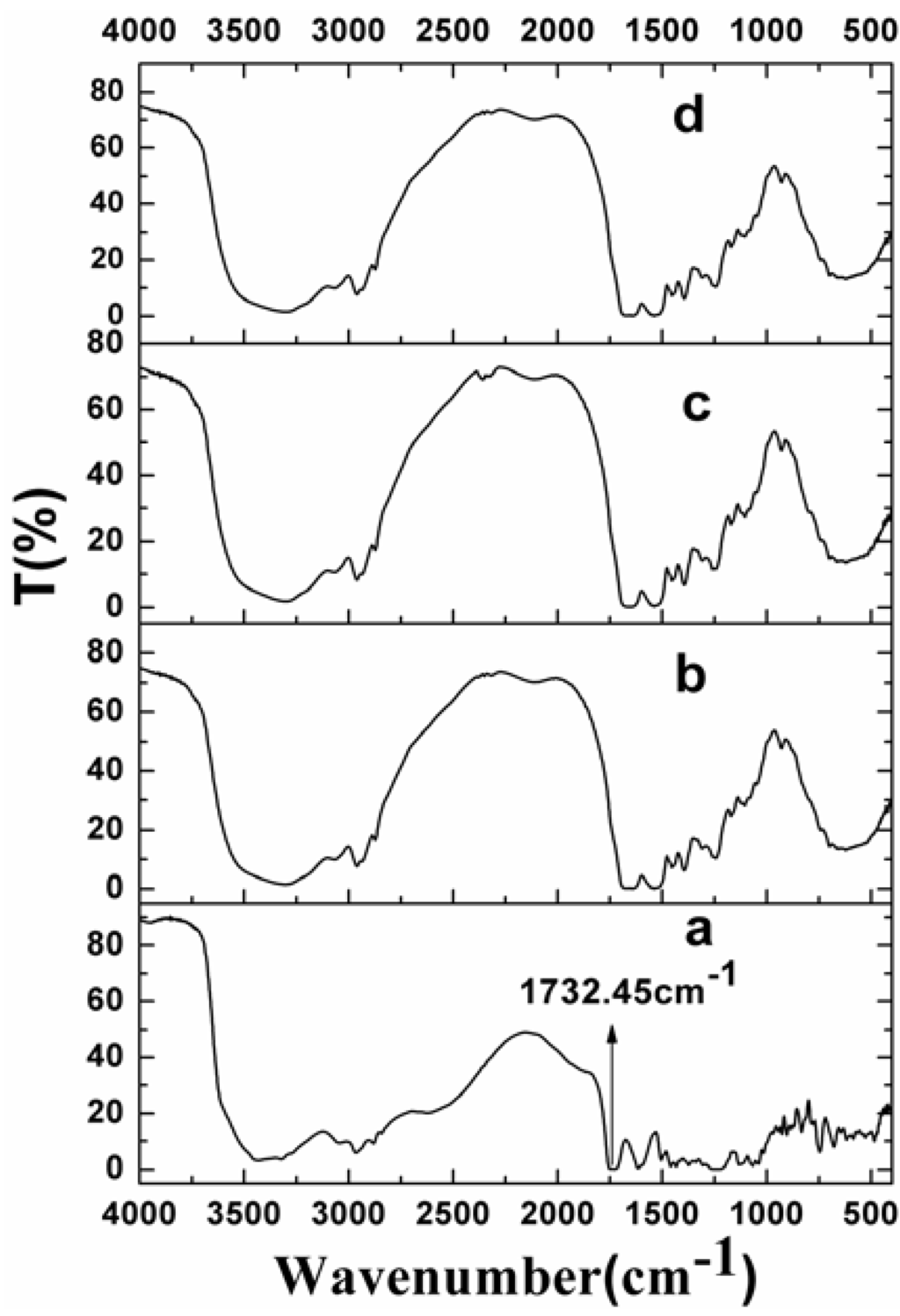 The samples were diluted with KBr mixing powder at 1% and pressed to obtain self-supporting disks, separately. The Fourier transform infrared (FTIR) spectrum was obtained by IRAffinity-1 (SHIMADZU, Japan) and recorded in the wave number range of 4000–500 cm−1 at a resolution of 4 cm−1.