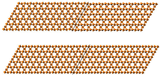 A particular characteristic of flexible framework structures, visible in the geometric analysis of dynamic disorder, is the capacity for substantial local rearrangements of the structure [25]. This is achieved by cooperative rotational modes involving many polyhedra. As a result, interatomic distances—for example, O–O distances defining a channel radius or pore aperture—can vary by amounts on the order of an Ångstrom without any great energetic penalty. This flexibility must be taken into account when considering interstitial ionic or molecular motion through a porous flexible framework [26,27]. Geometric simulation has been applied to investigate this flexibility in several systems.