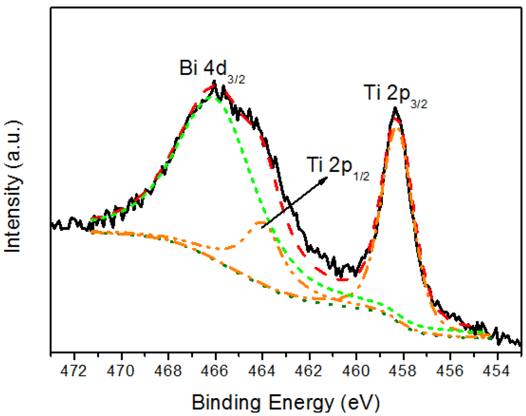 - Jovalekic, C.; Zdujic, M.; Atanasoska, Lj. Surface analysis of bismuth titanate by Auger and X-ray photoelectron spectroscopy. J. Alloy. Compd. 2009, 469, 441–444. [Google Scholar] [CrossRef]