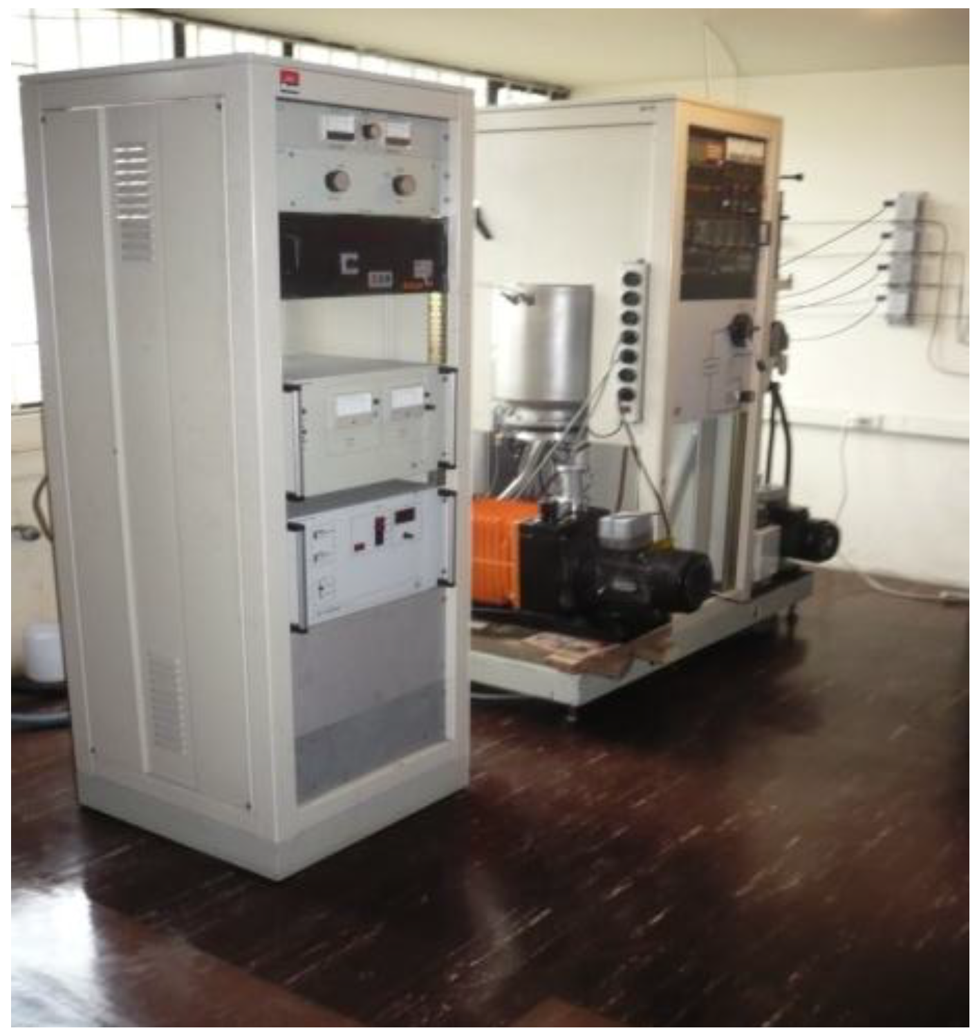 - Alfonso, J.E.; Torres, J.; Marco, J.F. Influence of the substrate bias voltage on the crystallographic structure and surface composition of Ti6Al4V thin films deposited by RF magnetron sputtering. Braz. J. Phys. 2006, 36, 994–996. [Google Scholar] [CrossRef]