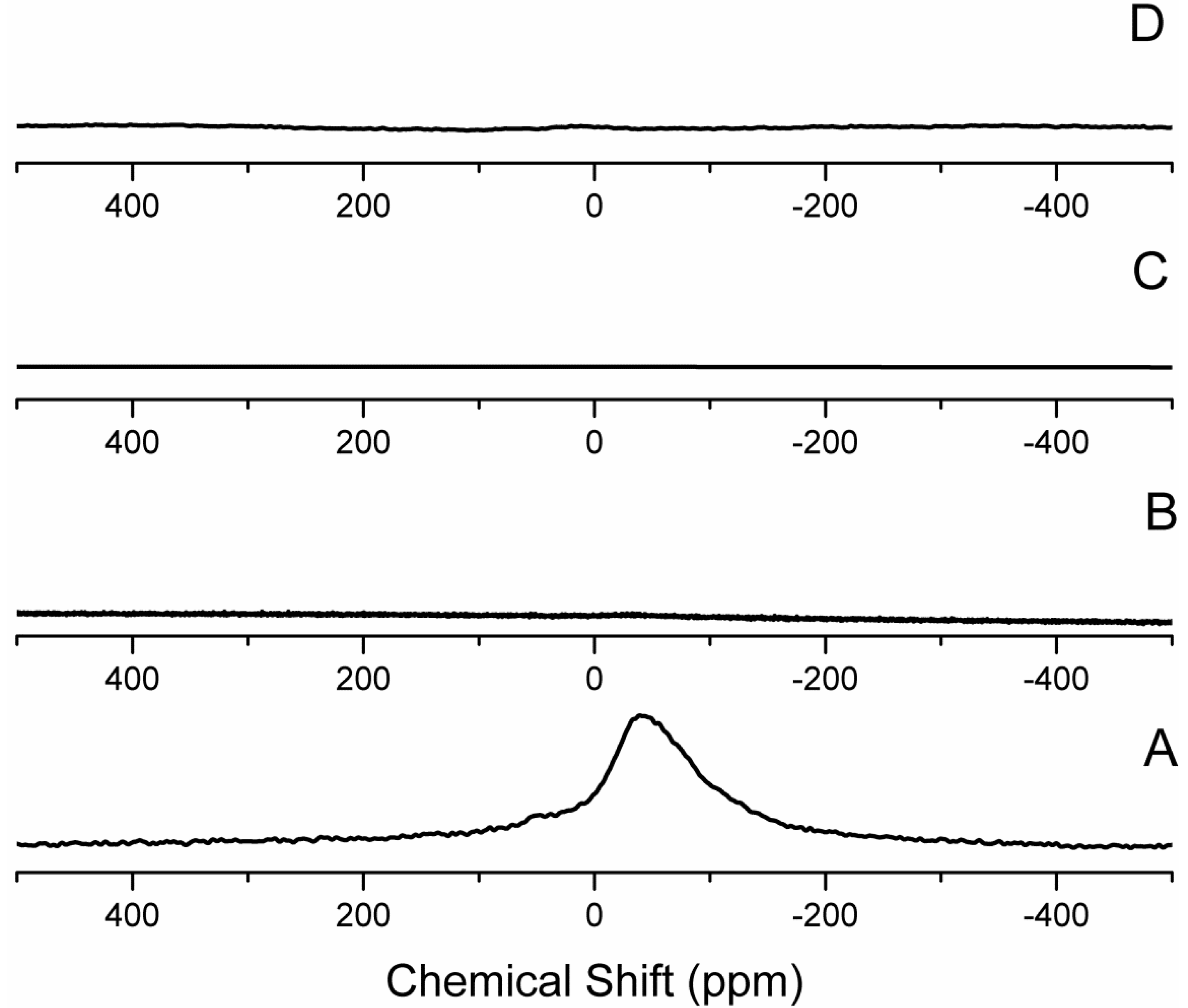 23Na MAS NMR spectra of (A) Na+ MMT; (B) CG-MMT 3:1; (C) NG-MMT 3:1; and (D) NG-MMT 6:1.
