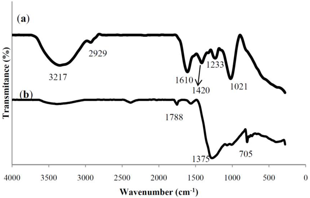 FT-IR spectrum for (a) the S. muticum a queous extract; and (b) S. muticum formed Ag-NPs.