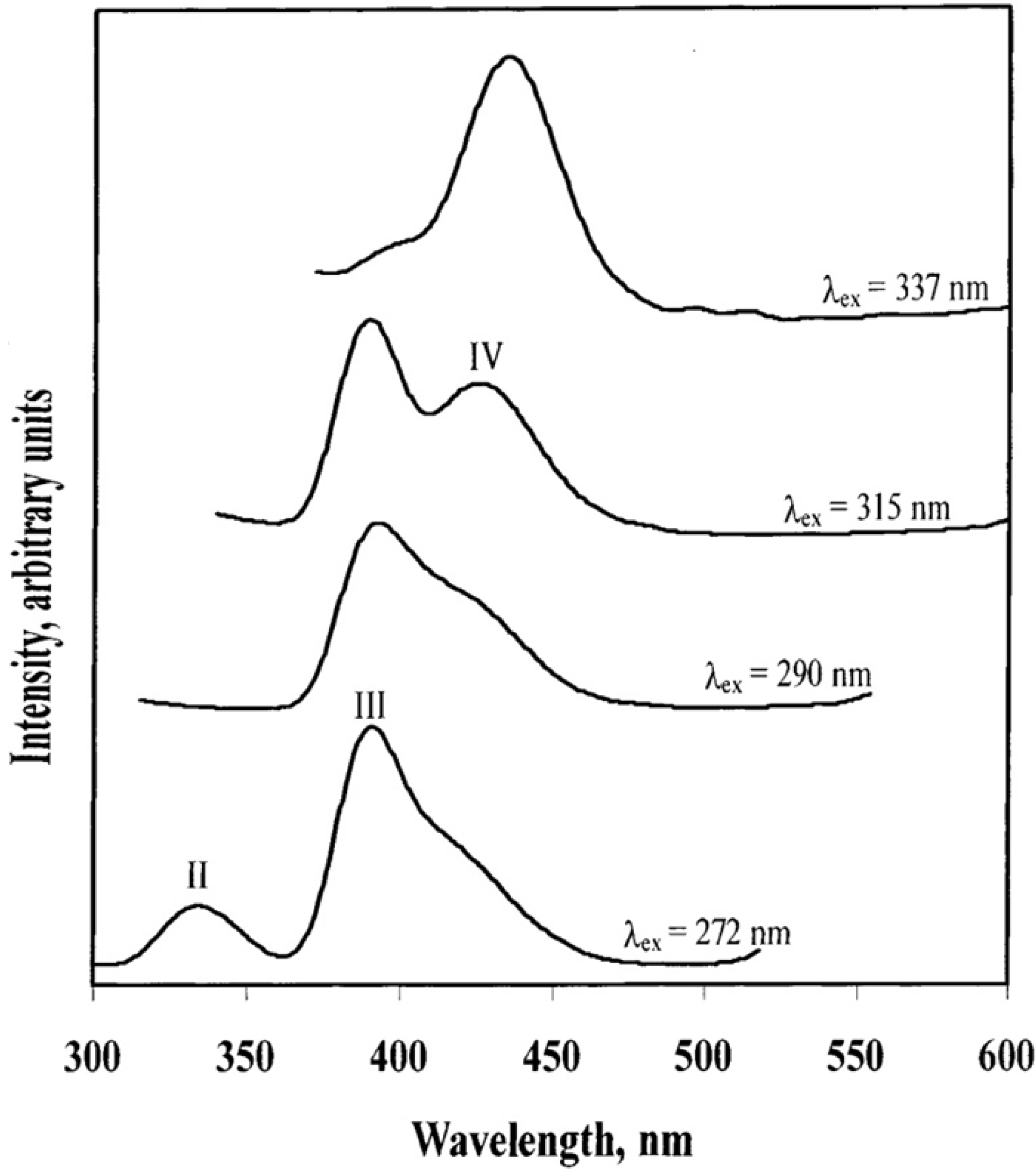 2/KCl at 77 K with different excitation wavelengths. (Reprinted with permission from [