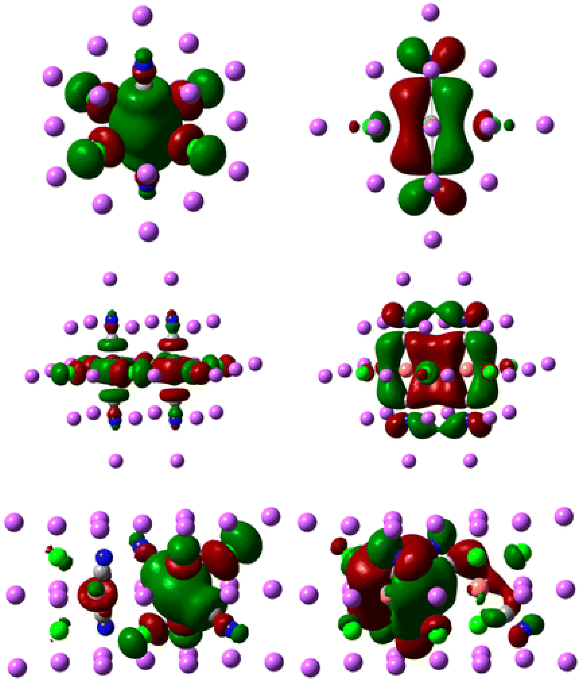 Isodensity of HOMO (left) and LUMO (right) for Cu(CN)