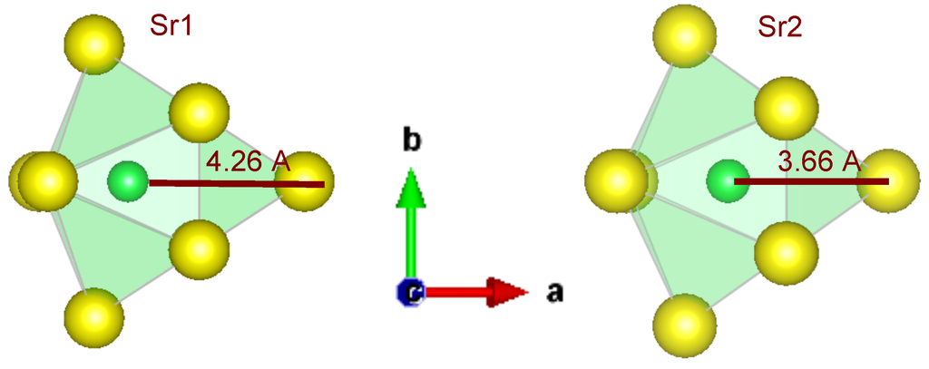 Schematic representation of the coordination environment for both Sr sites in SrSiS.