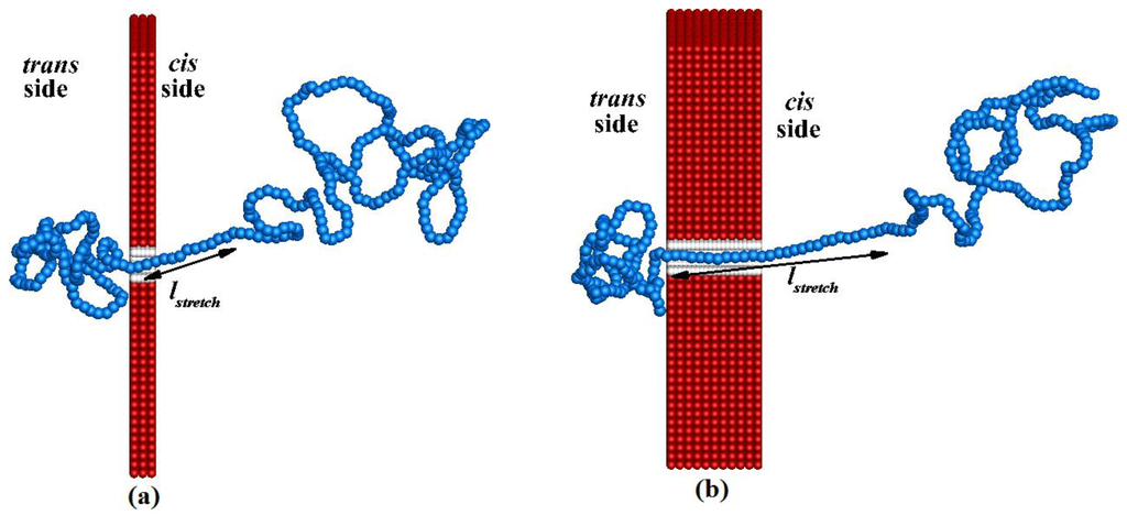 lstretch. The stretched portion of the polymer outside the pore and that inside the pore should show slower motion if