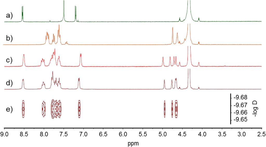 - Cohen, Y.; Avram, L.; Frish, L. Diffusion NMR spectroscopy in supramolecular and combinatorial chemistry: An old parameter-new insights. Angew. Chem. Int. Ed 2005, 44, 520–554. [Google Scholar]