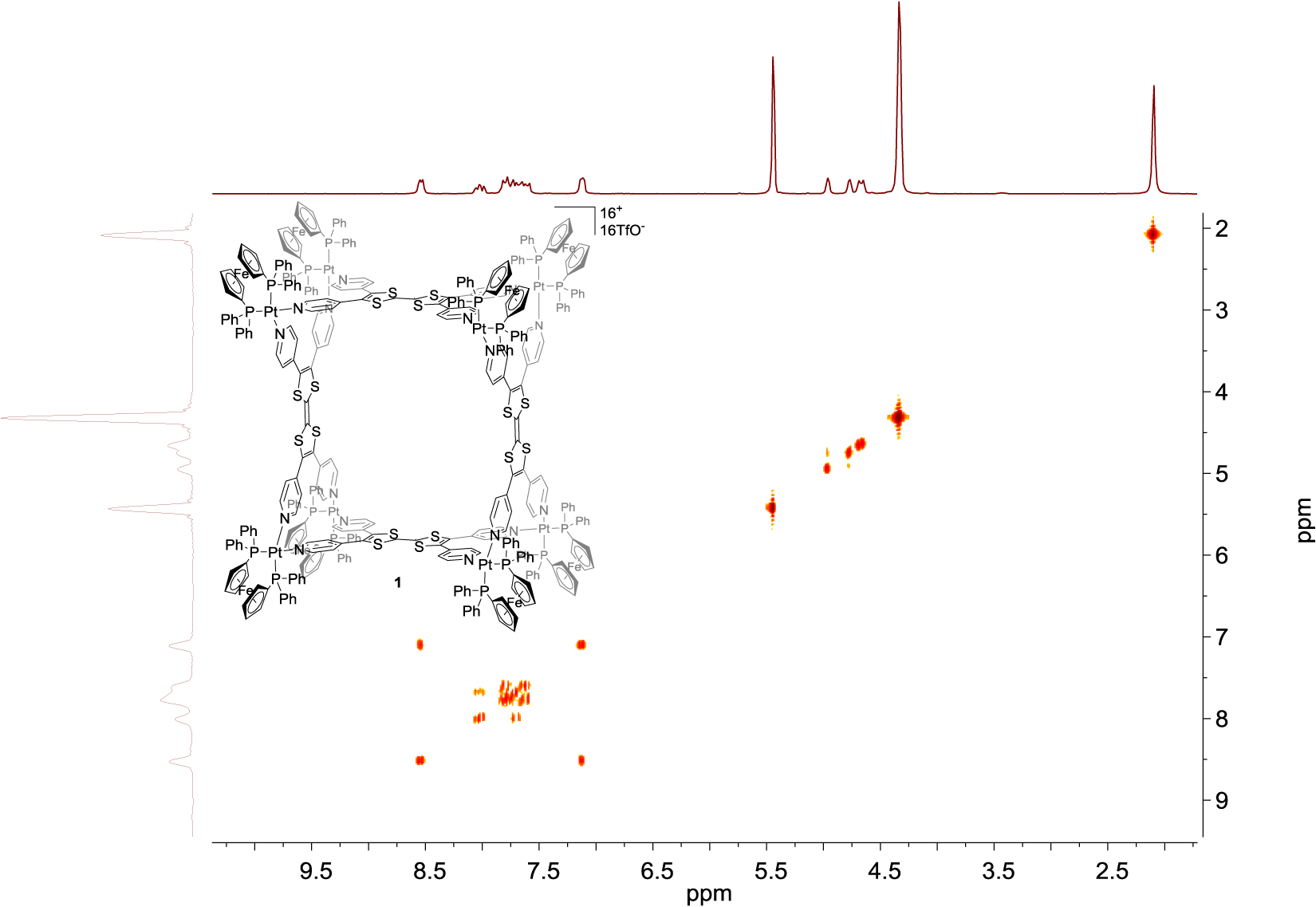 The coordination-driven self-assembly methodology has proven during the last decades to be very efficient for the preparation of discrete polygons (2D) or polyhedra (3D) otherwise challenging to synthesize through conventional covalent multi-step synthesis [1–13]. This approach involves a coordination process between a rigid organic ligand and a metal center of complementary geometry, to provide thermodynamically stable discrete assemblies in high yields. In particular, nitrogen-based binding sites such as substituted pyridines are often used in presence of square planar Palladium (II) or Platinum (II) salts.