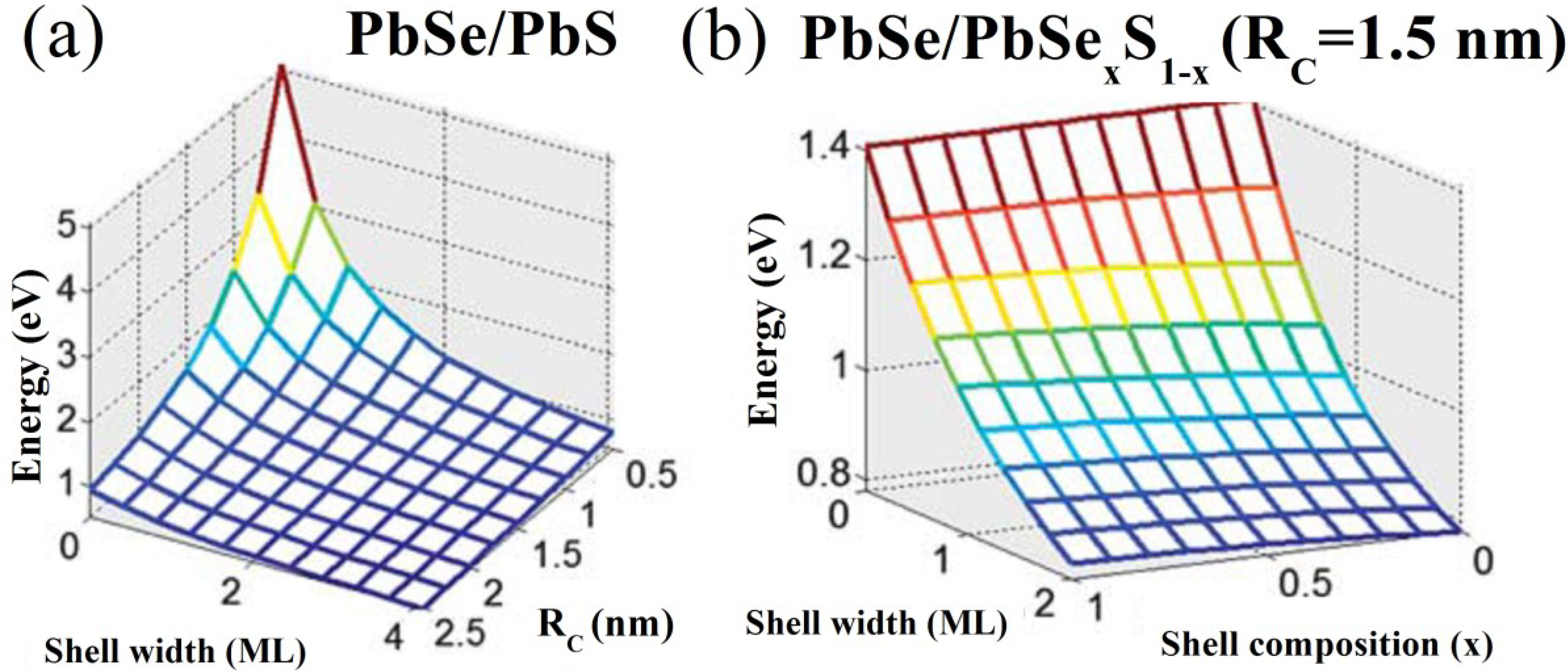 2.1. Electronic Structure of PbSe/PbSexS1–x (0 ≤ x ≤ 1) QDs