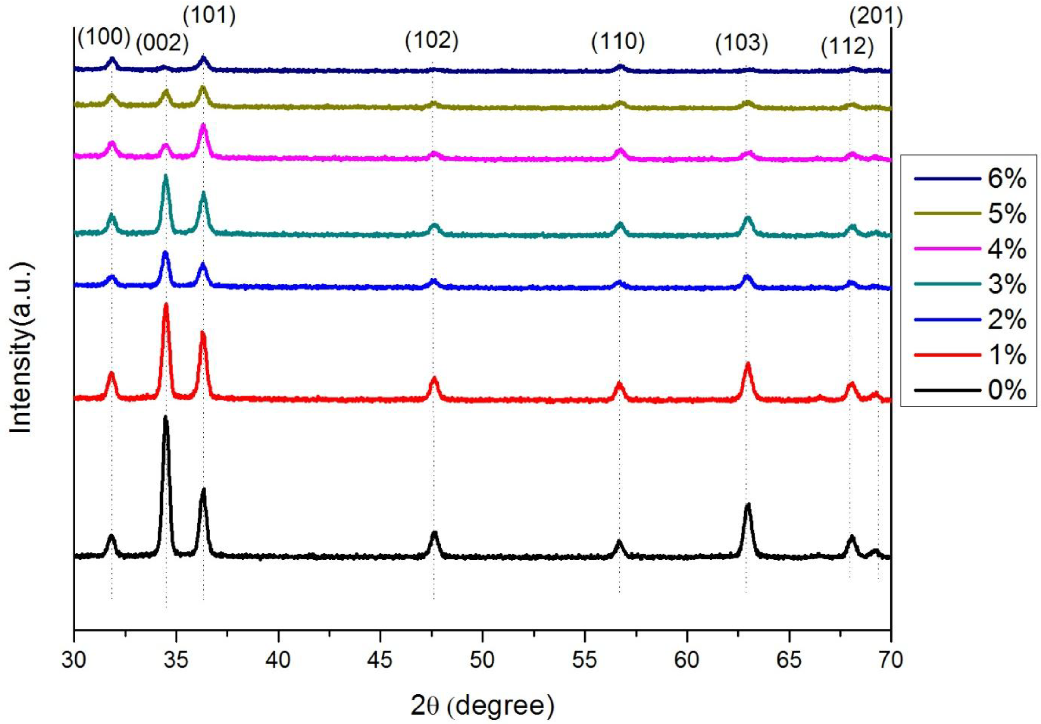 XRD patterns of CuxZn1−xO (x = 0–0.06).