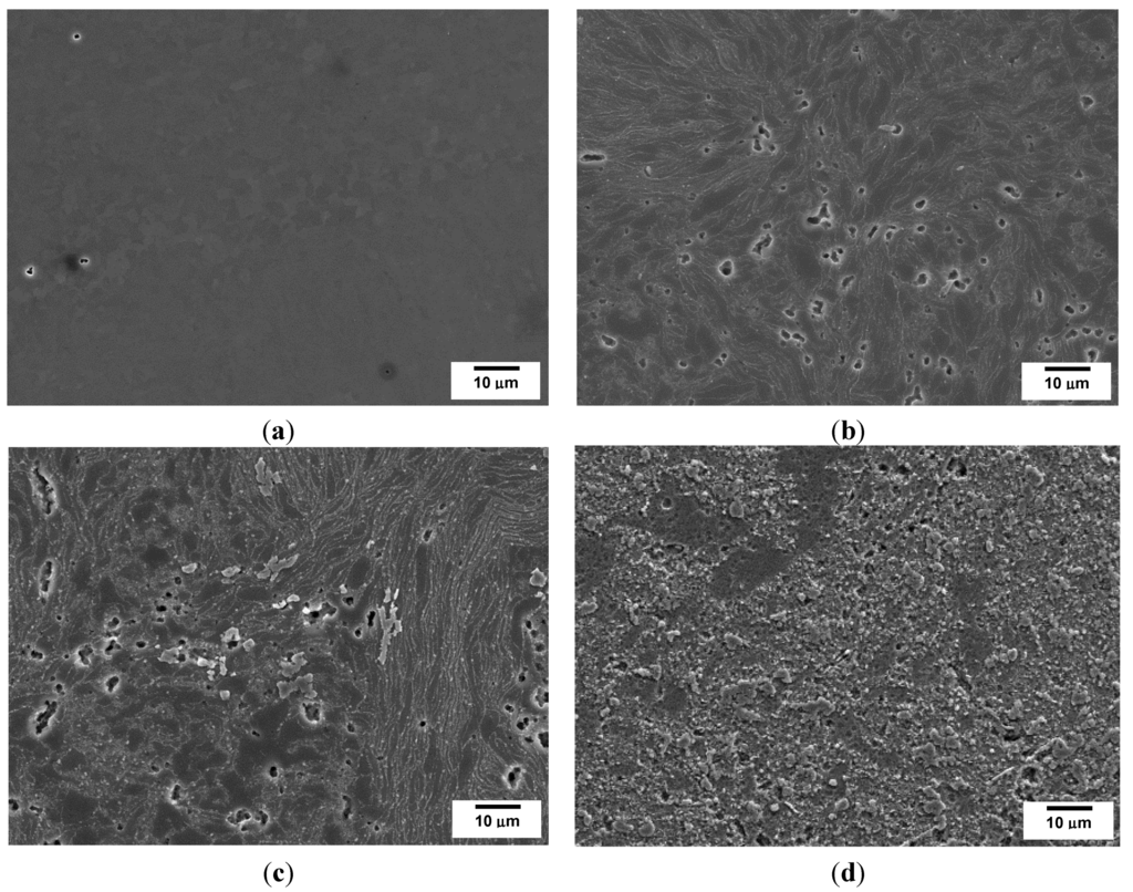 In addition to the mechanical properties, the type of particle-reinforcement, their size and their amount have also a strong influence on Al-MMCs’ corrosion resistance [23,24,25,26]. The different electrochemical properties between the metallic matrix and the ceramic reinforcement make MMCs more susceptible to corrosion, and therefore, additional protection is required.