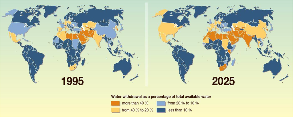 While for thousands of years of human history, water has been a plentiful resource all around the world and almost a free good, nowadays, the situation is going to be reversed. Unfortunately, water scarcity (Figure 1) is gradually becoming the single greatest threat to food security, human health, and natural ecosystems [1].
