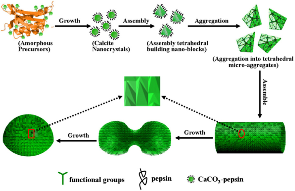 - Ma, X.; Li, L.; Yang, L.; Su, C.; Wang, K.; Jiang, K. Preparation of hybrid CaCO3–pepsin hemisphere with ordered hierarchical structure and the application for removal of heavy metal ions. J. Cryst. Growth 2012, 338, 272–279. [Google Scholar]