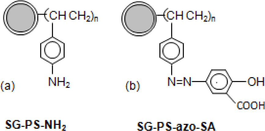 Silica gel is a commonly used supporting material in inorganic-organic hybrid materials due to its environmental and economic factors and high thermal and mechanical stabilities [233–241]. Polystyrene diazo-coupled with salicyclic acid [233] (SG–PS–azo–SA) and encapsulated silica gel by polystyrene containing amino groups (SG–PS–NH2) [234] (Scheme 8) were used for the removal of a number of heavy metals.