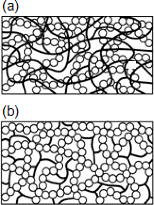 But, when three-dimensional frameworks such as zeolites or mesoporous silicates, are used as inorganic components and polymer is formed without crosslinking, the polymer chains could be partially or completely removed from the product. In this case, the composite is called pseudo-interpenetrating polymer network (PIPN) [136,137].