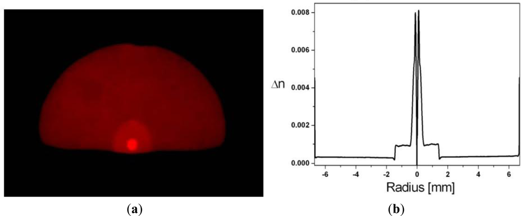 The fibre used in this work is shown in Figure 1a and its refractive index profile in Figure 1b. A slight bulge is observed, due to material rounding, because the thermal expansion of the inner cladding differs from that of the outer cladding and was not considered during the draw, a factor that proves highly beneficial for this work. The properties of the particular fibre used in these experiments are summarised in Table 1. The fibre used had a measured core-flat distance of 8 μm to ensure that the study focuses on the surface effects of self-assembly on the inner cladding primarily.