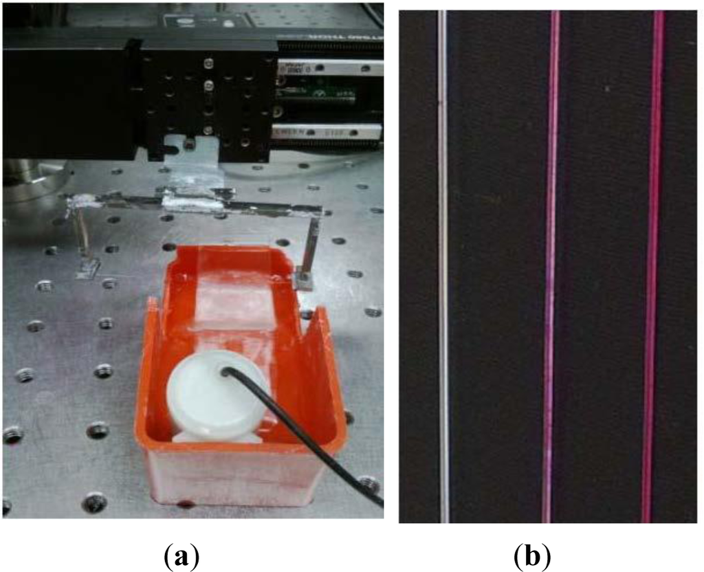 - Canning, J.; Weil, H.; Naqshbandi, M.; Cook, K.; Lancry, M. Laser tailoring surface interactions, contact angles, drop topologies and the self-assembly of optical microwires. Opt. Mat. Express 2013, 3, 284–294. [Google Scholar]