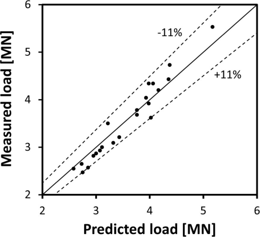 Figure 9 illustrates the capability of the 2D FEM model to predict the extrusion load over the range of extrusion conditions outlined in Table 1, by comparing the predicted and measured loads at a ram position of 50% of the billet length. As shown in the figure, the model predicted load falls within ±11% of the measured load, with the average difference of −1.4% and average absolute difference of 5.3%.