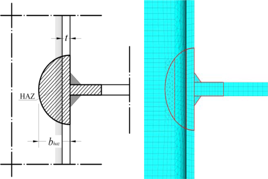 The extension of the heat affected zone (bHAZ) for the two materials has been fixed according to a circular shape detected as a function of the section profile geometry, as prescribed by Eurocode 9 (see Figure 7).