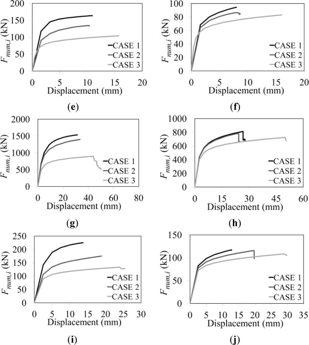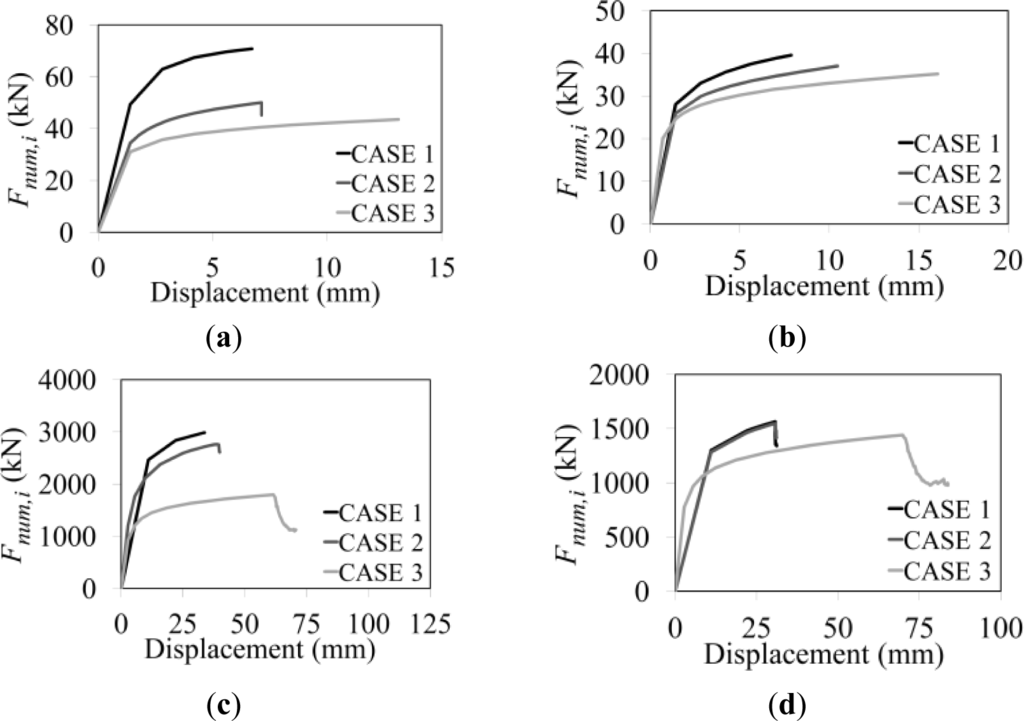 In Figure 8, the obtained results for the above three cases are provided in terms of Force-Displacement curves.