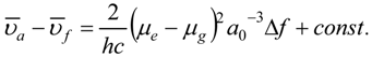 where h is the Planck constant, c is the speed of light, denotes the cavity radius in which the solute resides, υa − υf is the Stokes shift of the absorption and emission peak maximum and Δf is the orientation polarizability defined as: