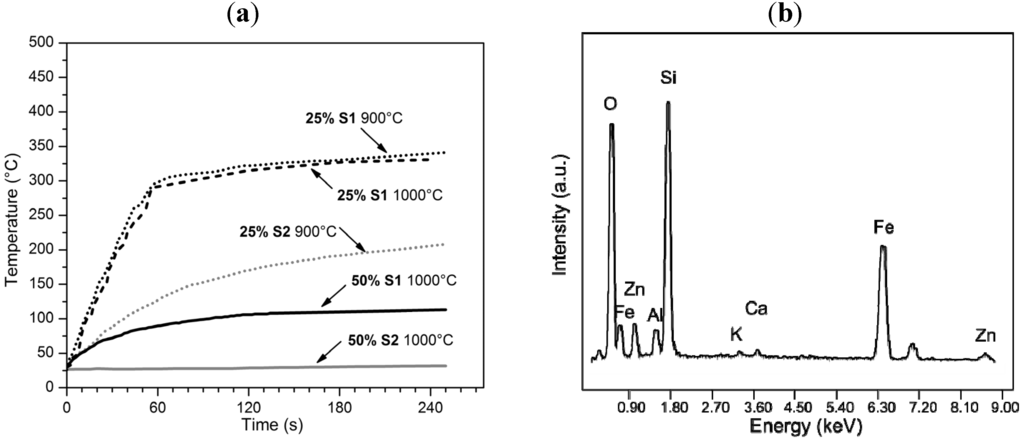 - Owing to the presence of magnetite, the developed glass ceramics (for a slag concentration of 25 wt%), exhibit intensive heating when subjected to an alternating magnetic field, so that they could be applied as novel heating elements;