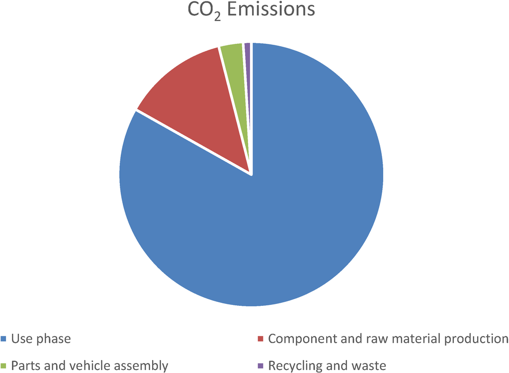 Figure 2. CO2 emissions during various life stages of an average vehicle (1000 kg) [8].