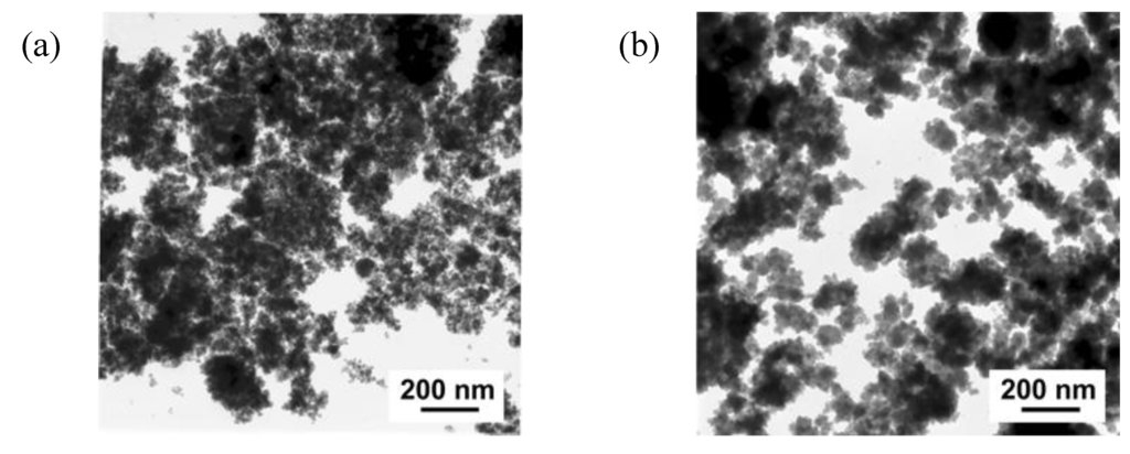 The particle size distributions of the silica samples were measured using a Zetasizer Nano ZS (Malvern Instruments Ltd., Malvern, UK), enabling measurements in the range 0.6–6000 nm, by the NIBS method. The microstructures of the samples were analyzed using transmission electron microscopy images (Joel 1200 EX II, JEOL Ltd., Tokyo, Japan).