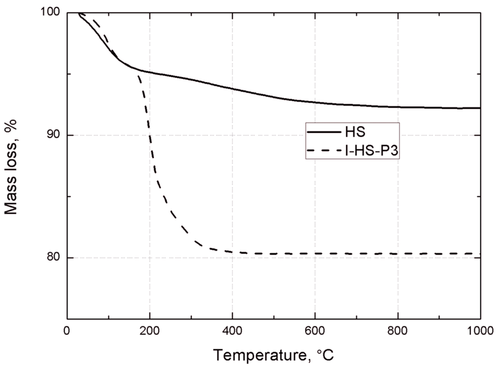 Thermogravimetric analysis was performed using a Jupiter STA 449 F3 (Netzsch GmbH, Selb, Germany). Samples weighing approximately 10.0 mg were placed in an Al2O3 crucible, and heated at a rate of 10 °C/min from 30 °C to 1000 °C in a nitrogen atmosphere.