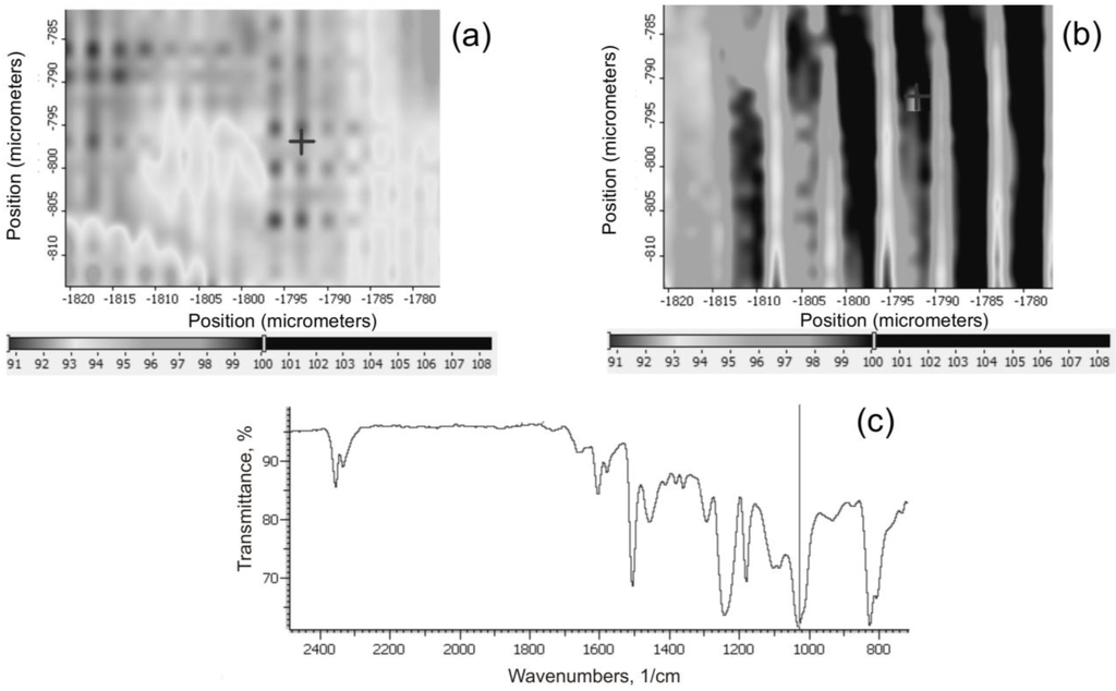 IR maps of the surface of the composites were made using a Nicolet FTIR MX IN10 microscope (Thermo Electron Scientific Instruments LLC, Madison, WI, USA), to determine the intensity of distribution of the characteristic Si–O–Si functional groups. This served to assess the uniformity of dispersion of grains of the filler in the composite.