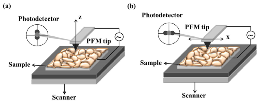 - Fujii, T.; Watanabe, S. Feedback positioning cantilever using lead zirconate titanate thin film for force microscopy observation of micropattern. Appl. Phys. Lett. 1996, 68, 467–468. [Google Scholar]