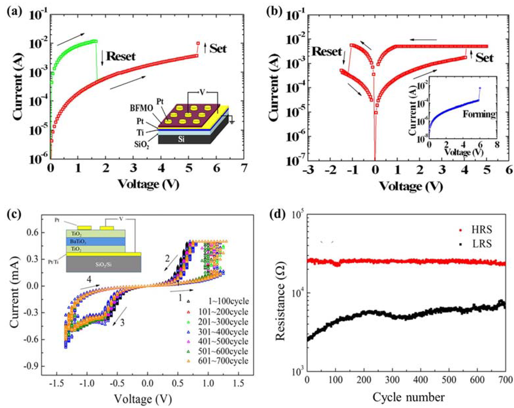 - Yan, Z.; Guo, Y.; Zhang, G.; Liu, J.M. High-performance programmable memory devices based on Co-doped BaTiO3. Adv. Mater. 2011, 23, 1351–1355. [Google Scholar] [CrossRef]