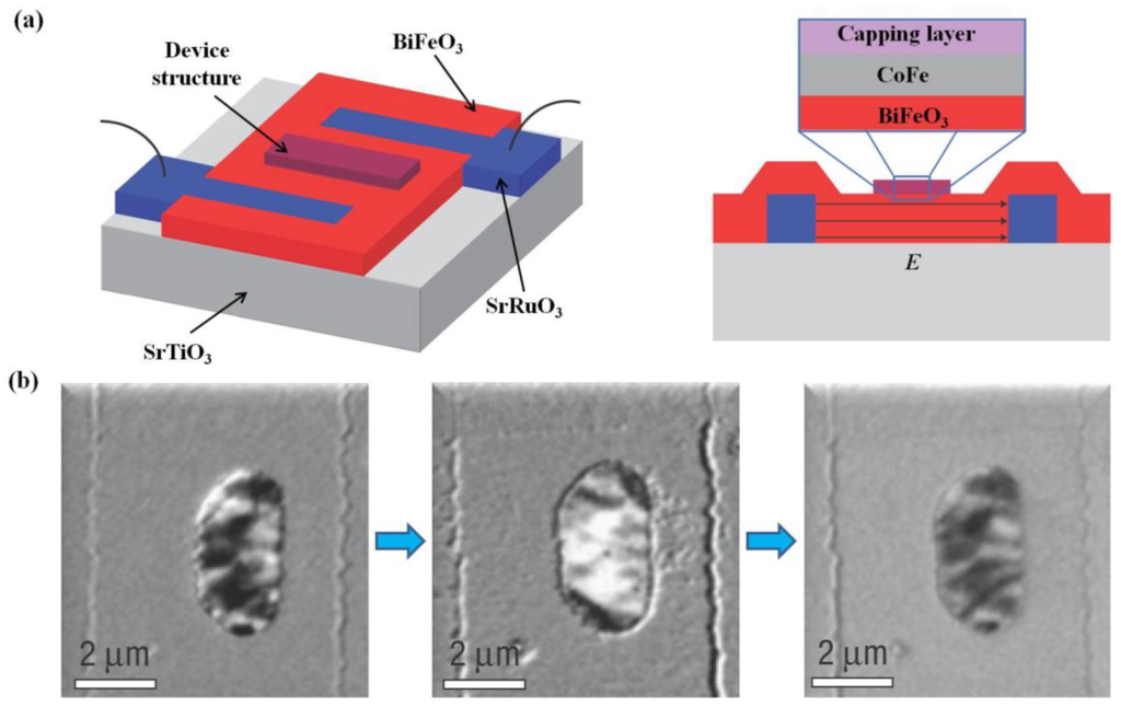- Chu, Y.; Martin, L.W.; Holcomb, M.B.; Gajek, M.; Han, S.; He, Q.; Balke, N.; Yang, C.; Lee, D.; Hu, W. Electric-field control of local ferromagnetism using a magnetoelectric multiferroic. Nat. Mater. 2008, 7, 478–482. [Google Scholar]