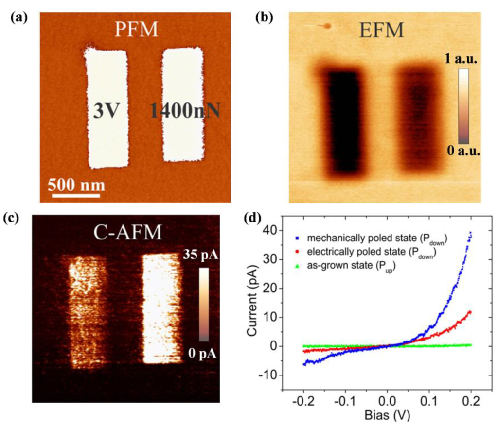 - Yuan, G.; Wang, J. Evidences for the depletion region induced by the polarization of ferroelectric semiconductors. Appl. Phys. Lett. 2009, 95, 252904. [Google Scholar]