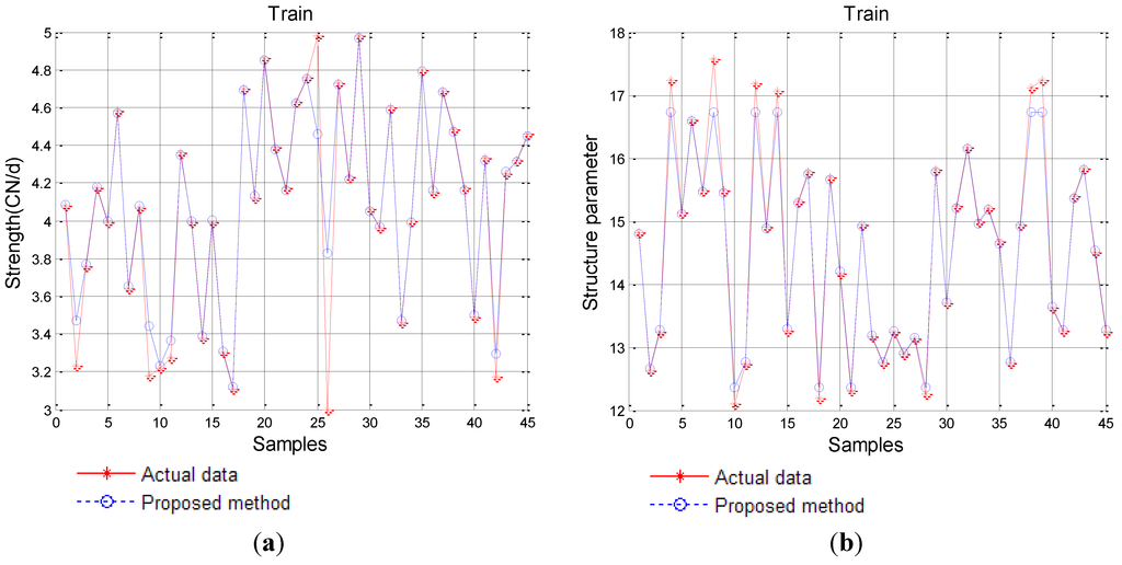 From Table 2, we can see that on the basis of MAE, the proposed SVM-IPSO achieves roughly a decrease of 55.59%, 13.64% and 10.09% compared to the other three methods, respectively. Similar results can be obtained from the other errors such as MRE with a decrease of 62.69%, 16.39% and 9.74%, RMSE with a decrease of 60.59%, 16.69% and 9.90%, and TIC with a decrease of 62.89%, 20.33% and 13.17%. Similar results are obtained on the basis of strength and structure parameters.