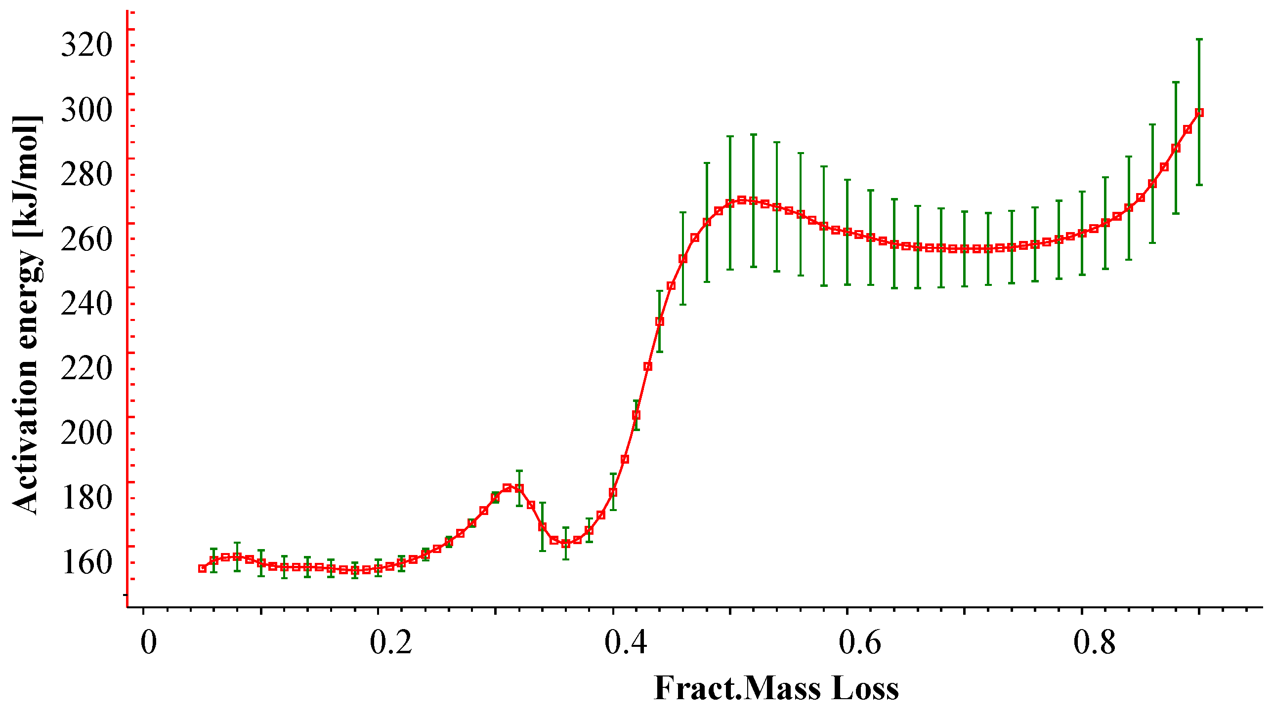 Activation energy as a function of fractional mass loss according to Friedman analysis.