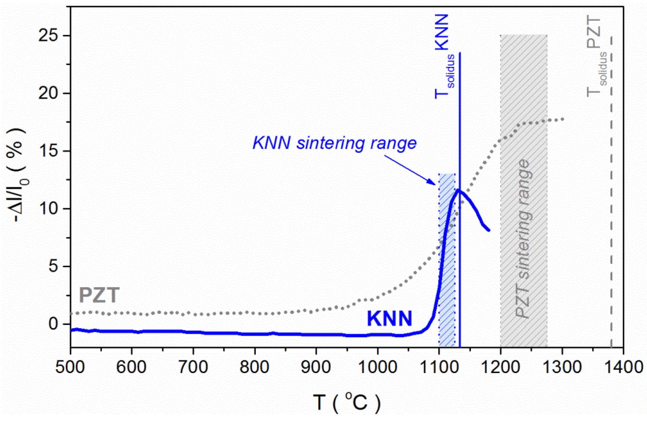 LPS has proved to be an effective way of preparing dense KNN ceramics, and in many studies the main purpose of the addition of a sintering aid was to increase the density and not so much to decrease the sintering temperature. Nevertheless, the latter could be achieved by a careful selection of sintering aids, and such an approach could contribute to reducing the expected losses of alkalis due to evaporation.