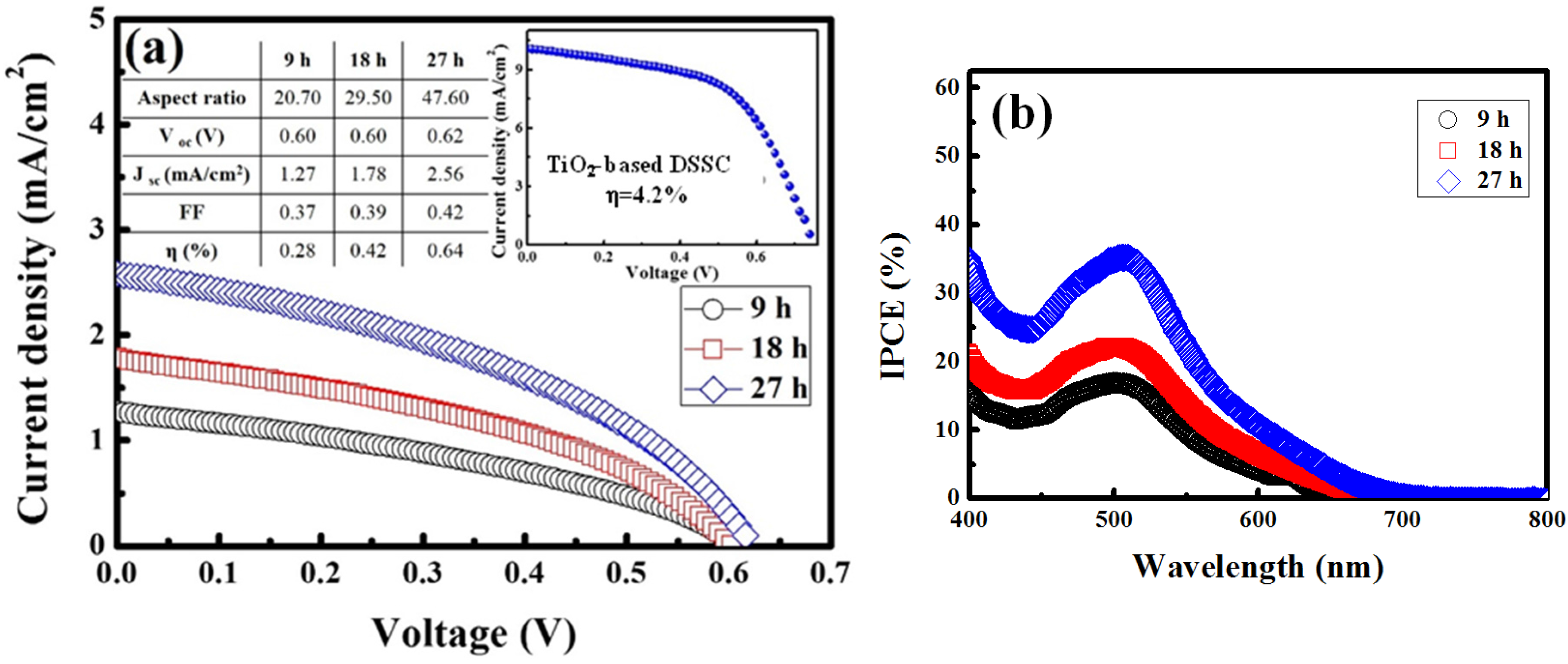Chicago/Turabian StyleLai, Fang-I, Jui-Fu Yang, and Shou-Yi Kuo. 2015. "Efficiency Enhancement of Dye-Sensitized Solar Cells’ Performance with ZnO Nanorods Grown by Low-Temperature Hydrothermal Reaction" Materials 8, no. 12: 8860-8867. https://doi.org/10.3390/ma8125499
