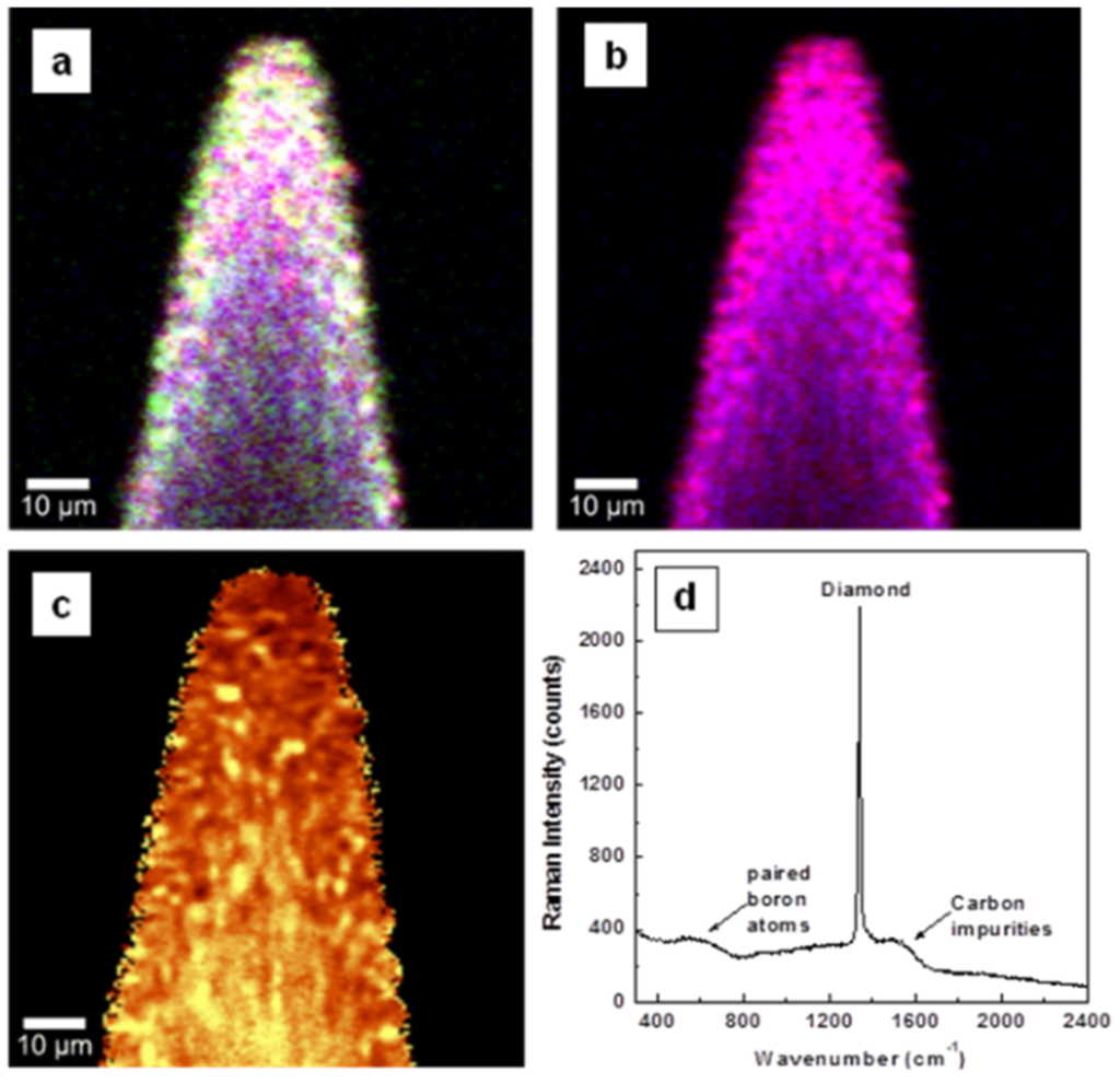24. Bernard, M.; Baron, C.; Deneuville, A. About the origin of the low wave number structures of the Raman spectra of heavily boron doped diamond films. Diam. Relat. Mater. 2004, 13, 896–899. [Google Scholar] [CrossRef]