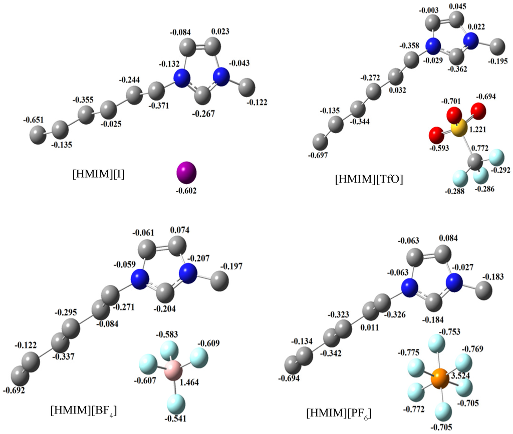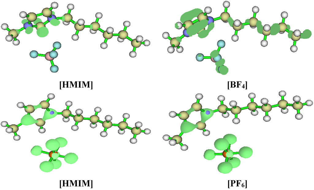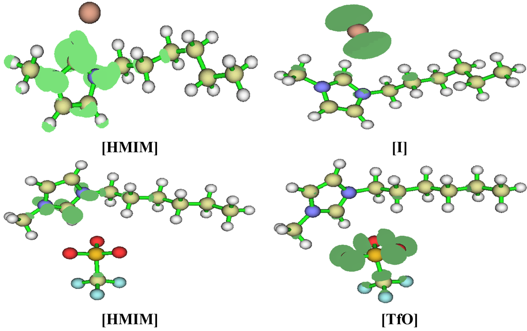 - Vyas, S.; Dreyer, C.; Slingsby, J.; Bicknase, D.; Porter, J.M.; Maupin, C.M. Electronic structure and spectroscopic analysis of 1-ethyl-3-methylimidazolium bis(trifluoromethylsulfonyl)imide ion pair. J. Phys. Chem. A 2014, 118, 6873–6882. [Google Scholar] [CrossRef] [PubMed]
