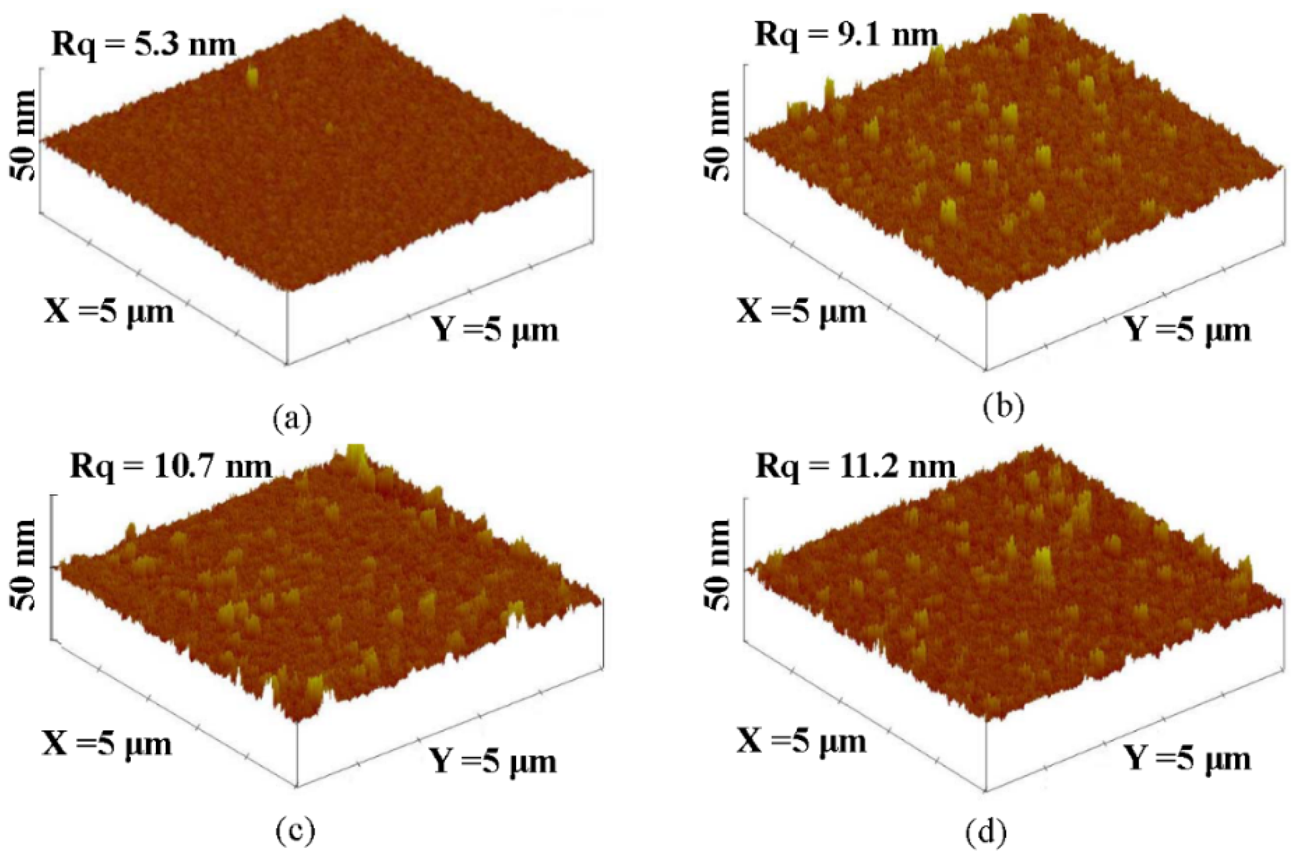| Rq (nm) | 5.3 | 9.1 | 10.7 | 11.2 |
