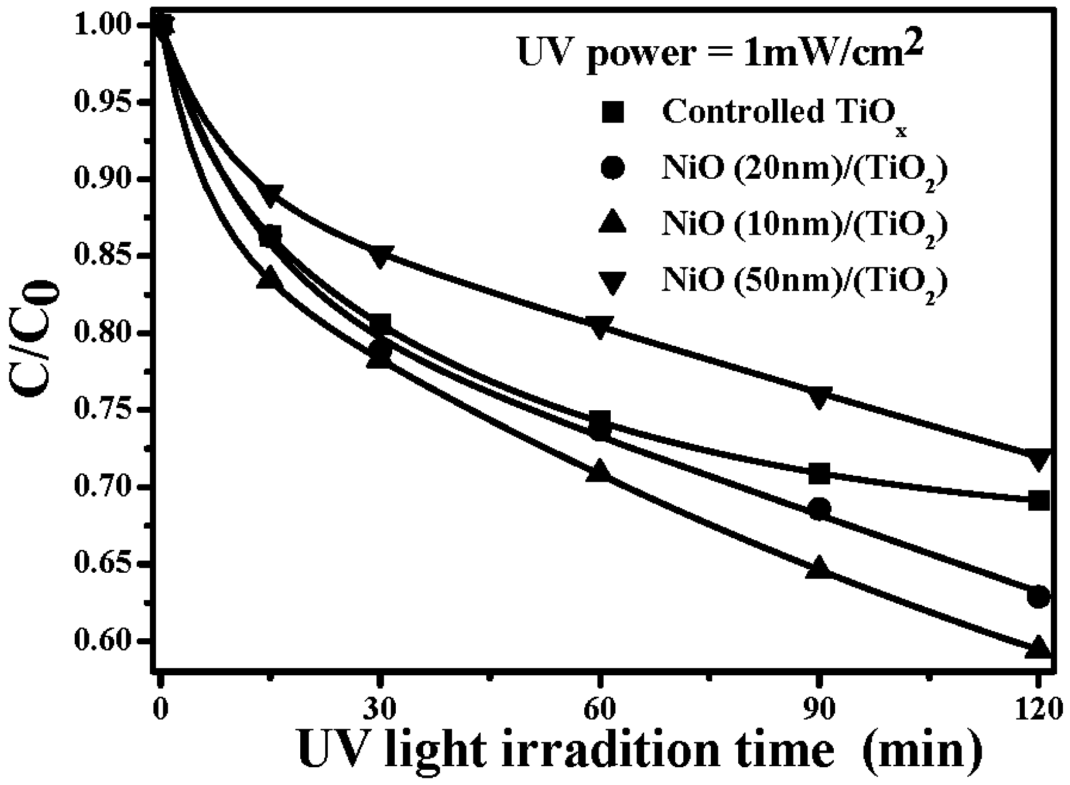 Chen J-Z, Chen T-H, Lai L-W, Li P-Y, Liu H-W, Hong Y-Y, Liu D-S. Preparation and Characterization of Surface Photocatalytic Activity with NiO/TiO2 Nanocomposite Structure. Materials. 2015; 8(7):4273-4286. https://doi.org/10.3390/ma8074273